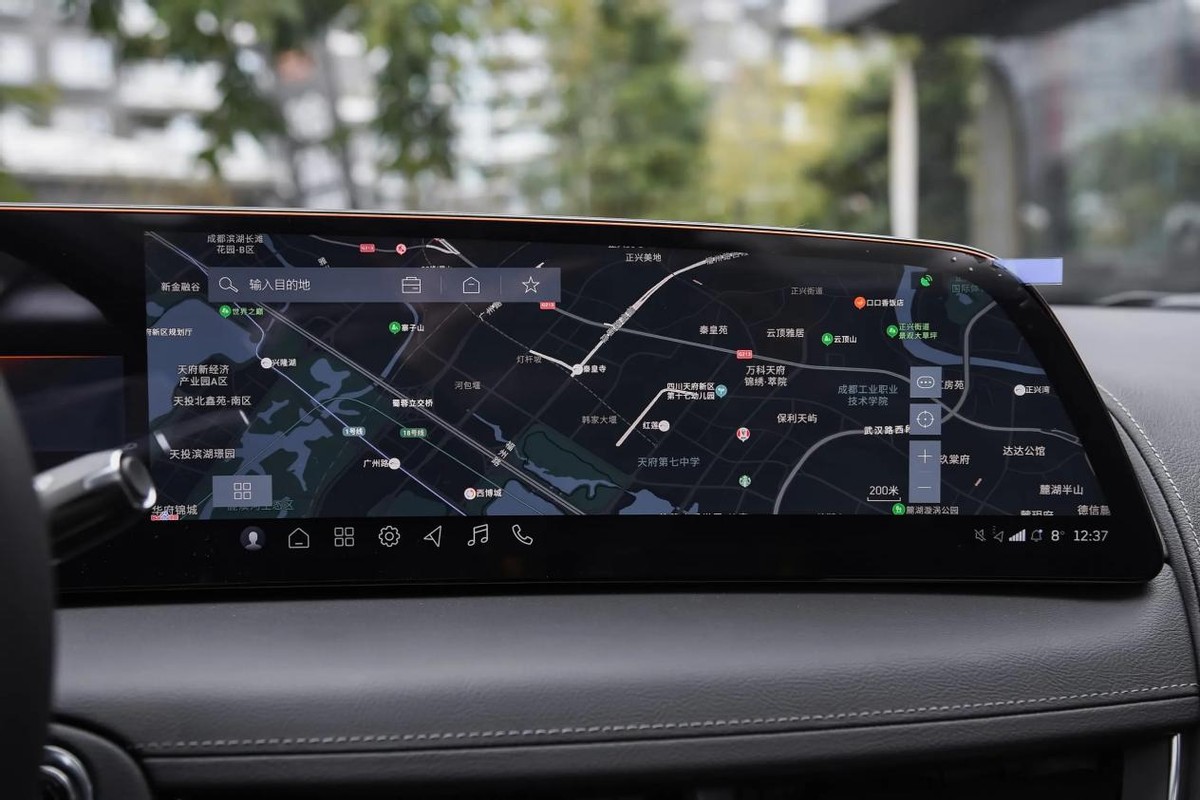 凯迪拉克CT5的内饰风格比较传统,但看得出用料比较扎实,车内被大面积皮质材料包覆,副驾前方加入了银色装饰,三辐式多功能方向盘,采用的是真皮材质,触感细腻柔和,搭配传统的鸡腿挡把,还是传统自动挡的操控方式。车内配备了33英寸一体中控屏,内置高通骁龙8155芯片,车机分辨率9K,既保证了画面清晰度,还支持5G网络、语音识别、应用下载等功能。其次,车内还配备了自动防眩目内后视镜、126色氛围灯、AKG(爱科技)品牌音响、主动降噪系统、15W手机充电面板等配置。